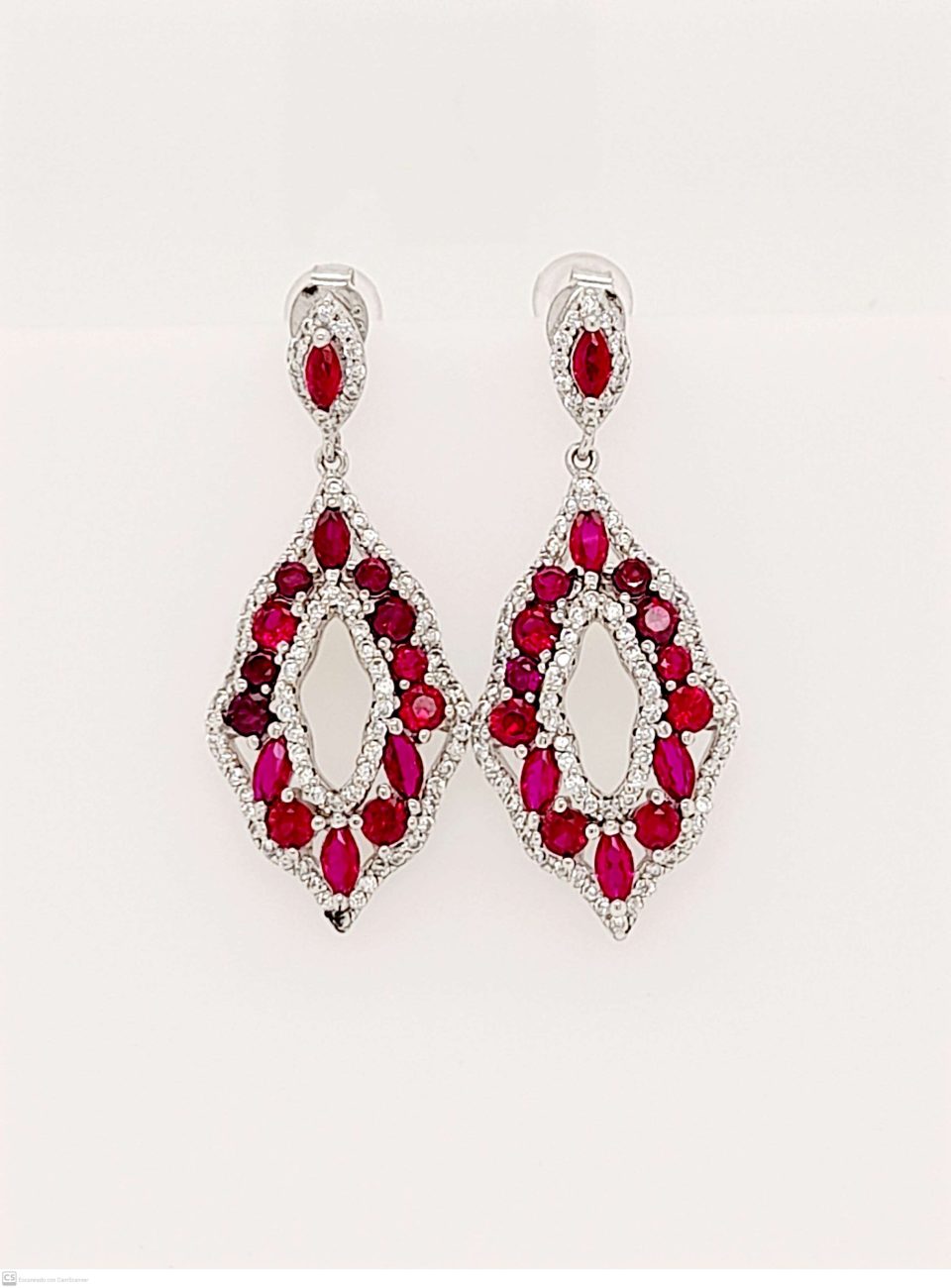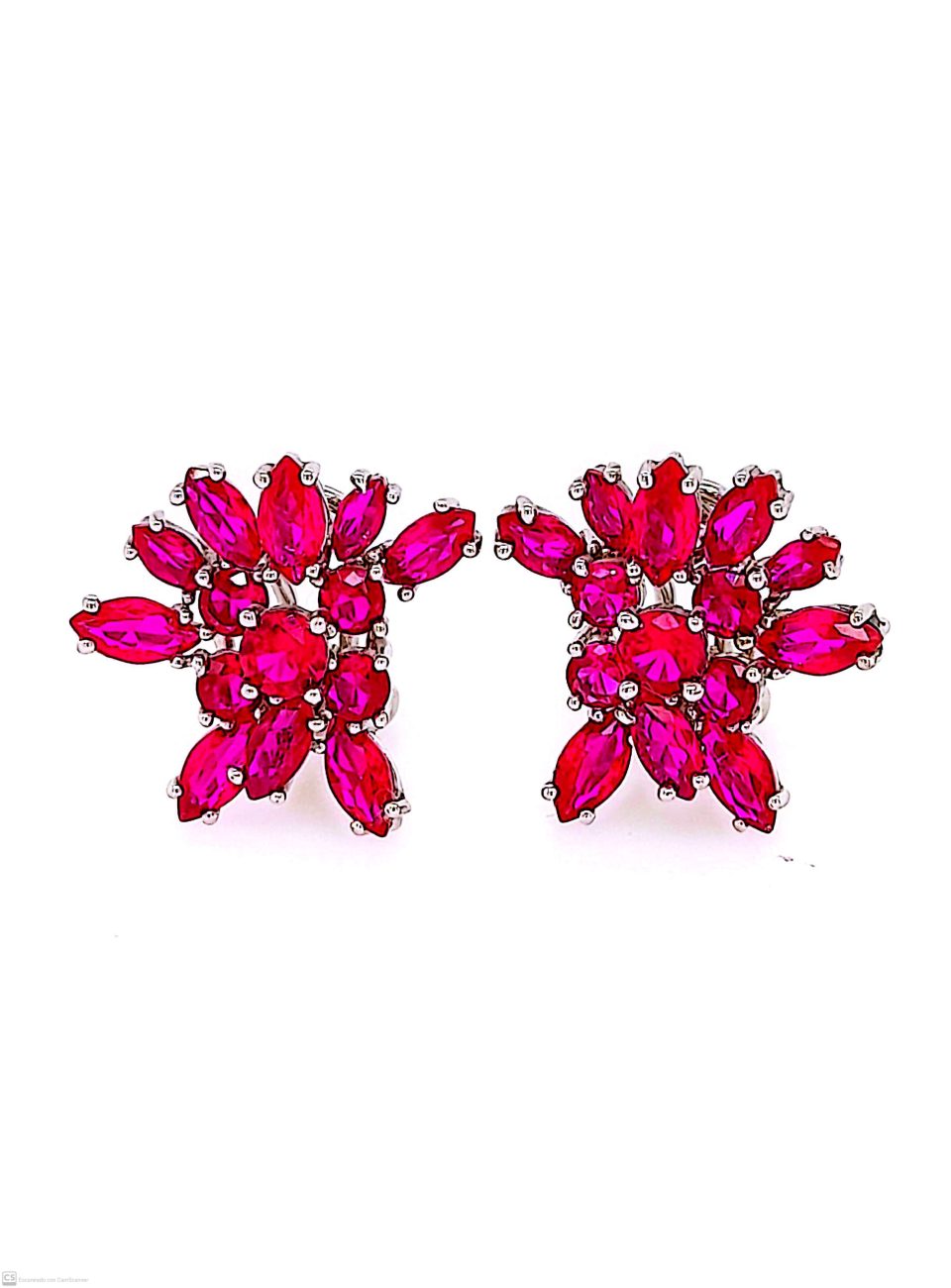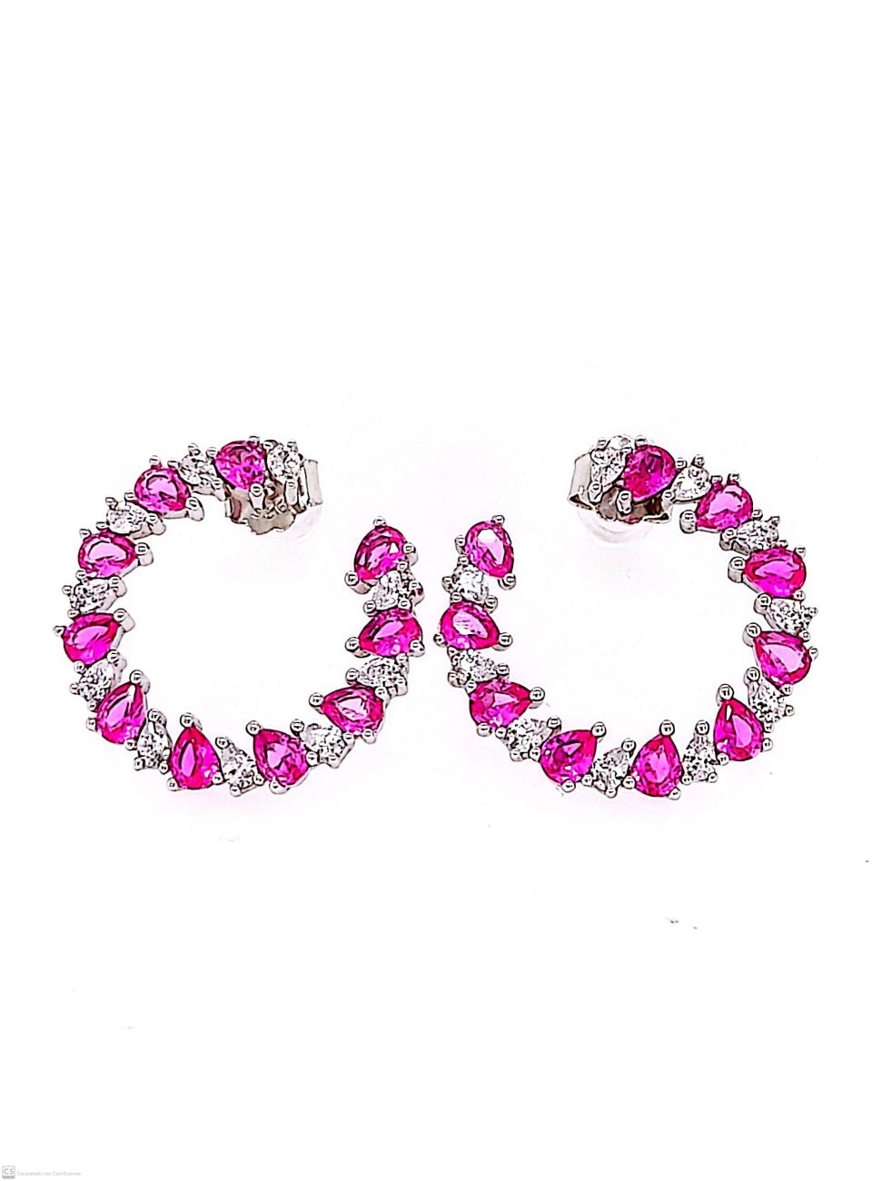 Aretes largos de plata 925 en forma de romboide con circones fucsia y transparentes.