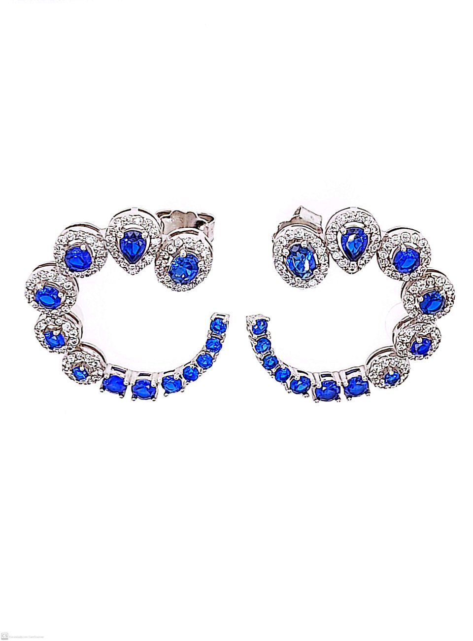 Aretes de plata 925 circulo con circones azules y transparentes en degrade de tamaño.