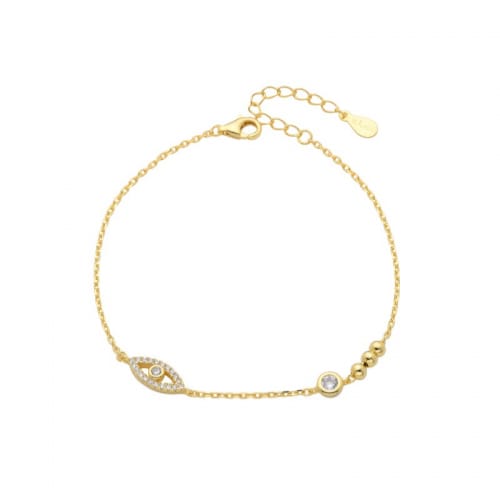 Pulsera de plata 925 bañada en oro con ojo turco y punto de luz.