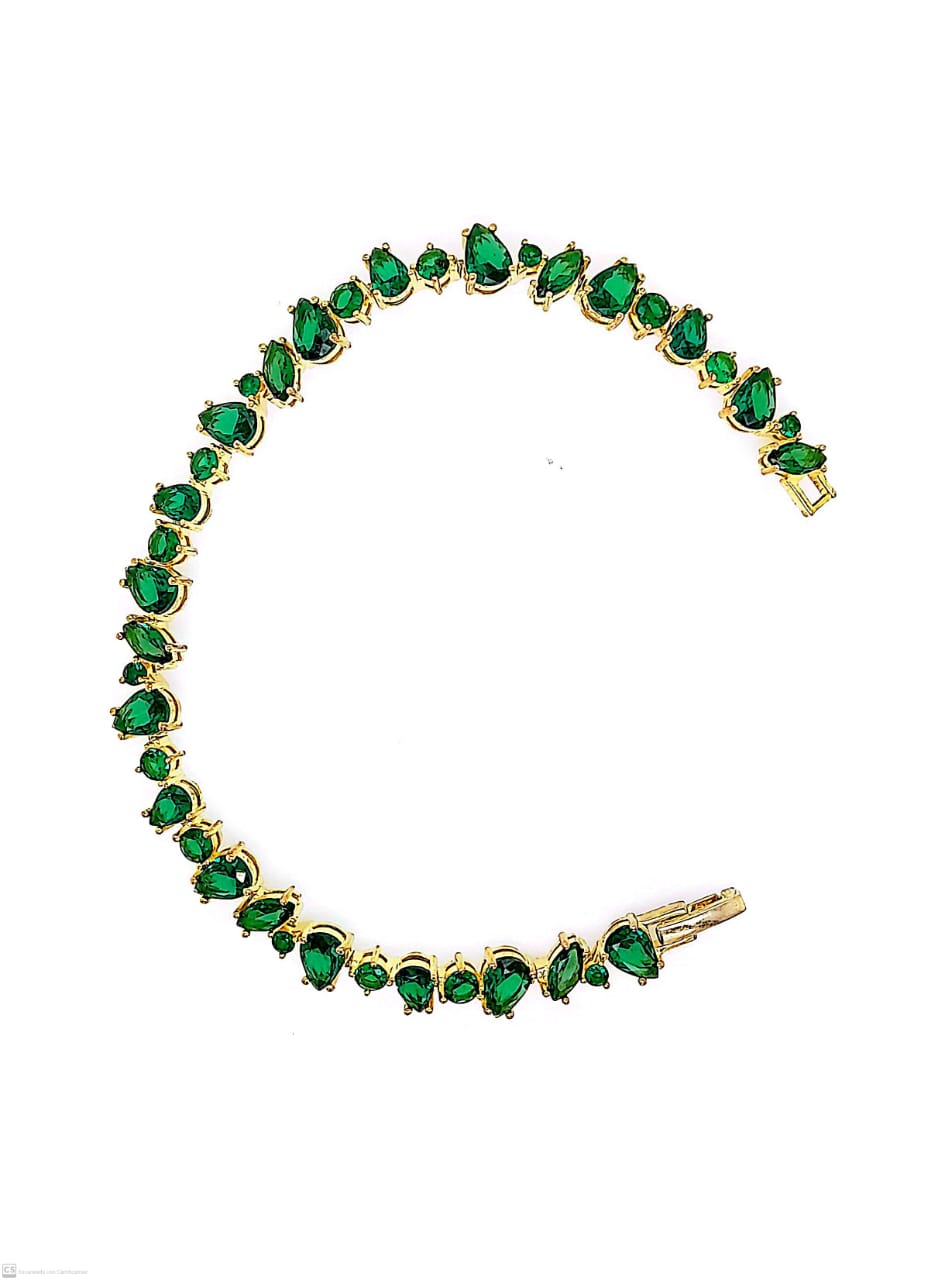 Pulsera de plata 925 bañado en oro con circones verdes.