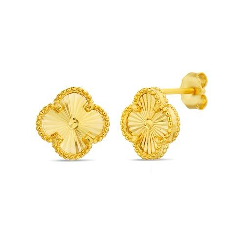 Aretes de plata 925 con baño en oro diseño de flor biselada.