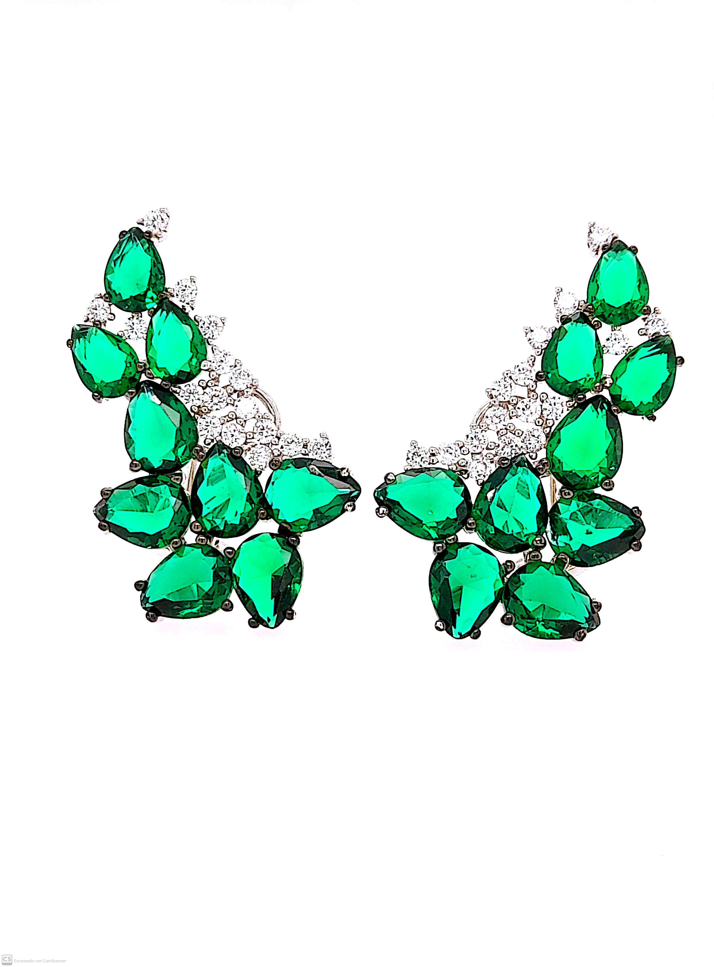 Aretes de fiesta con broche omega y circones en verde y transparentes de plata 925.