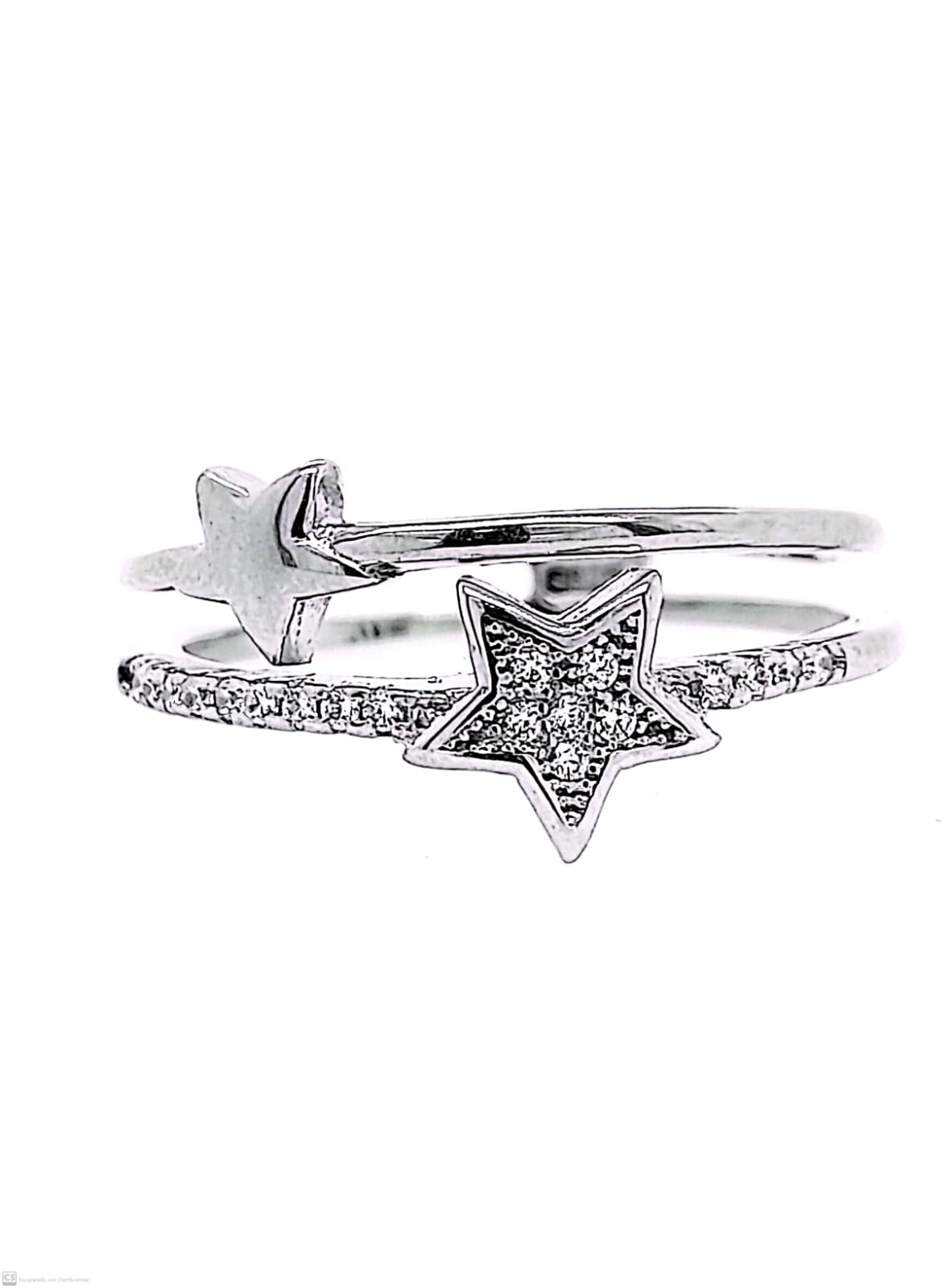 Anillo de plata 925 con estrella lisa y estrella con circones transparentes talla 8.
