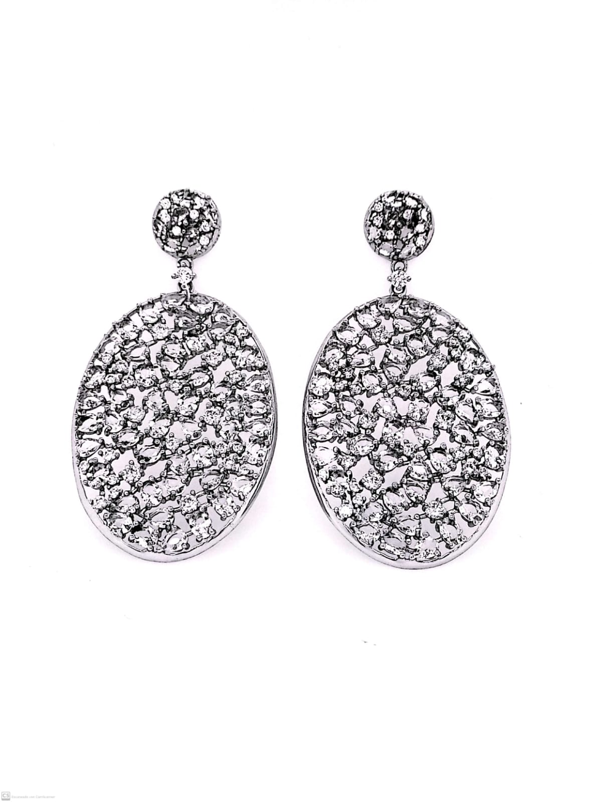 Aretes largos de plata 925 ovalados con circones transparentes.