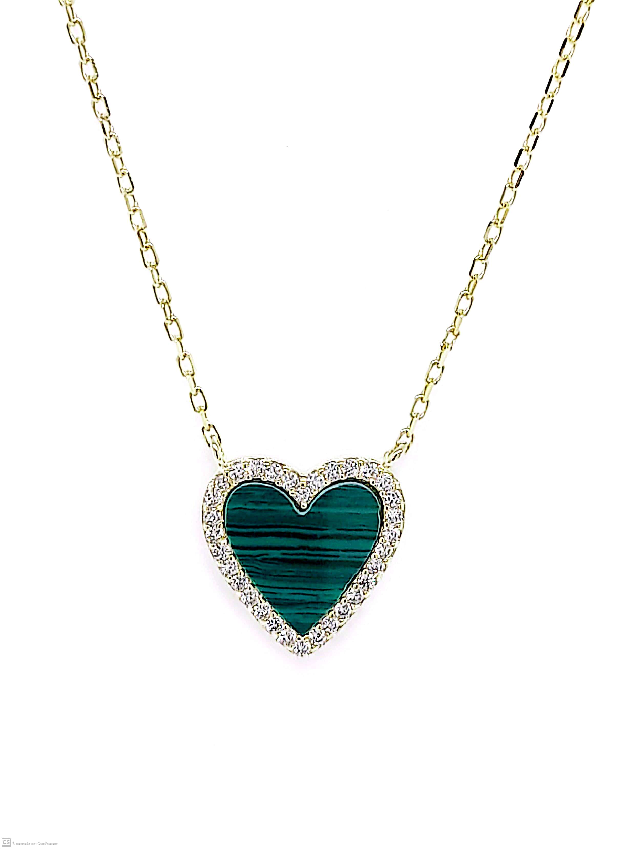 Collar dorado de corazón con malaquita y borde en circos micro pavea.