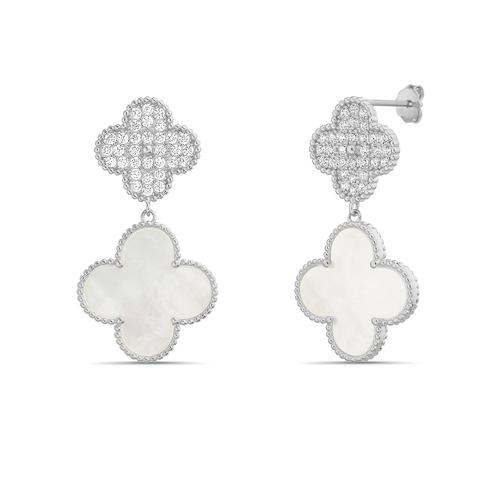 Aretes de plata 925 diseño de flor tipo van cleef con circones y nácar.