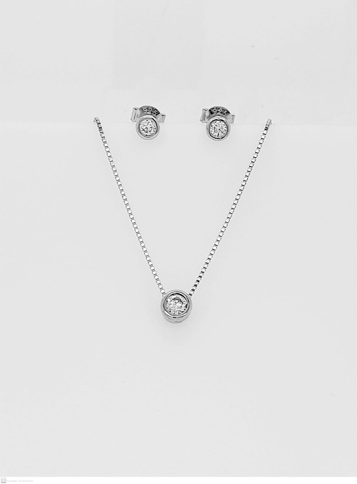 Juego de plata 925 rodinado, punto de luz en Moissanite.