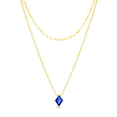 Collar choker de plata 925 bañado en oro doble cadena con circón en azul.