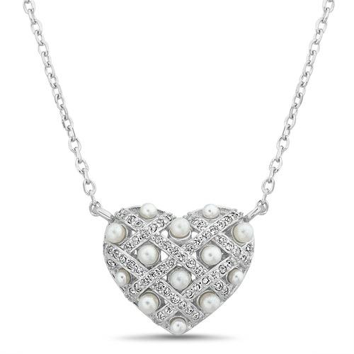 Collar de plata 925 rodinado con dije de corazón relleno de circones y perlas.