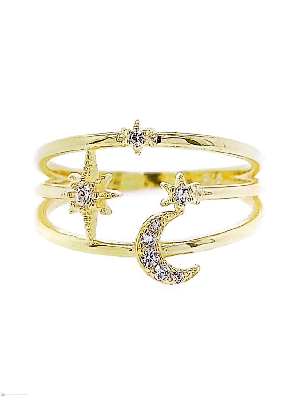 Anillo triple de libélula, infiniti y gota en verde de plata con baño en oro talla 7.