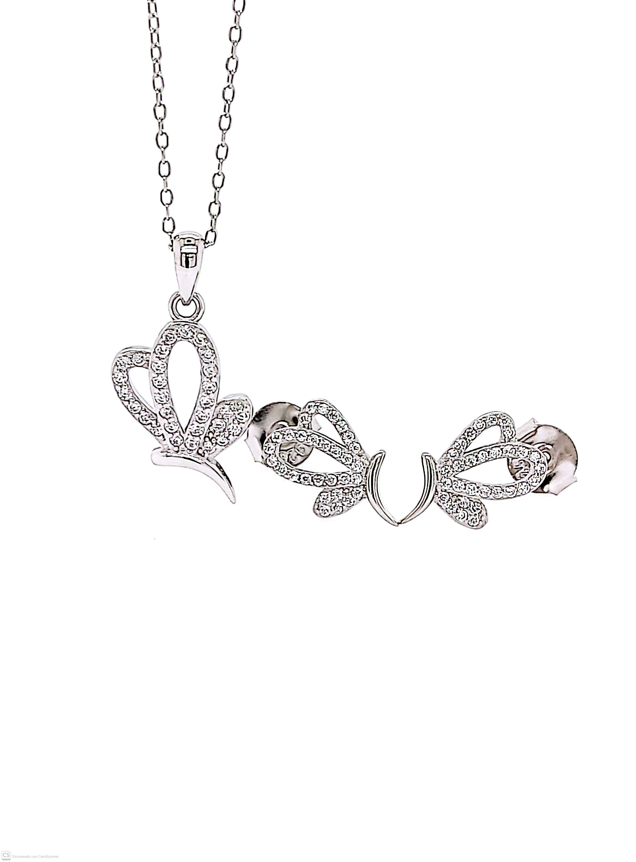 Juego de plata 925 rodinado de mariposa de lado con circones micro pavea.
