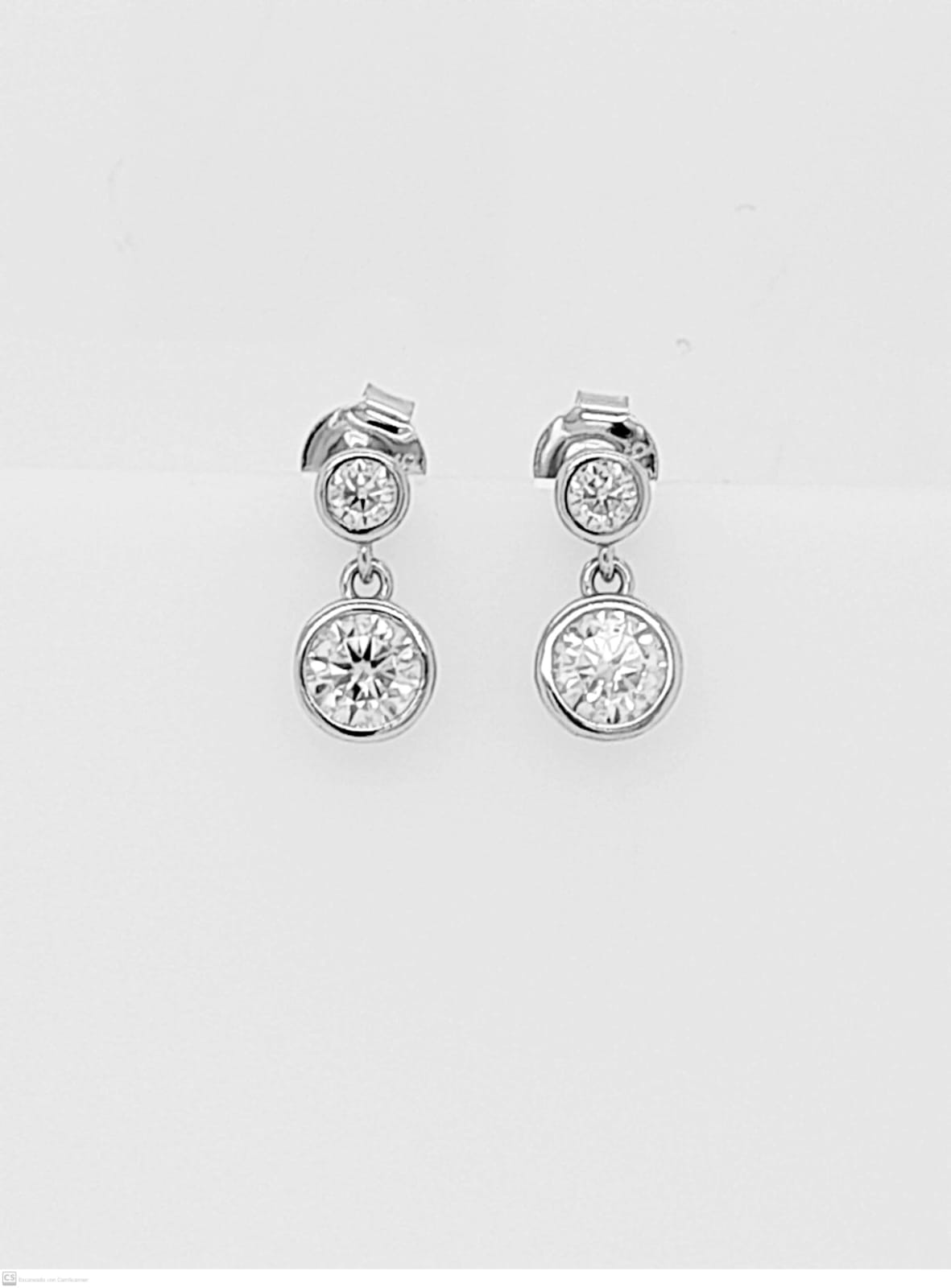Aretes de plata 925 rodinada con doble Moissanite redondo.