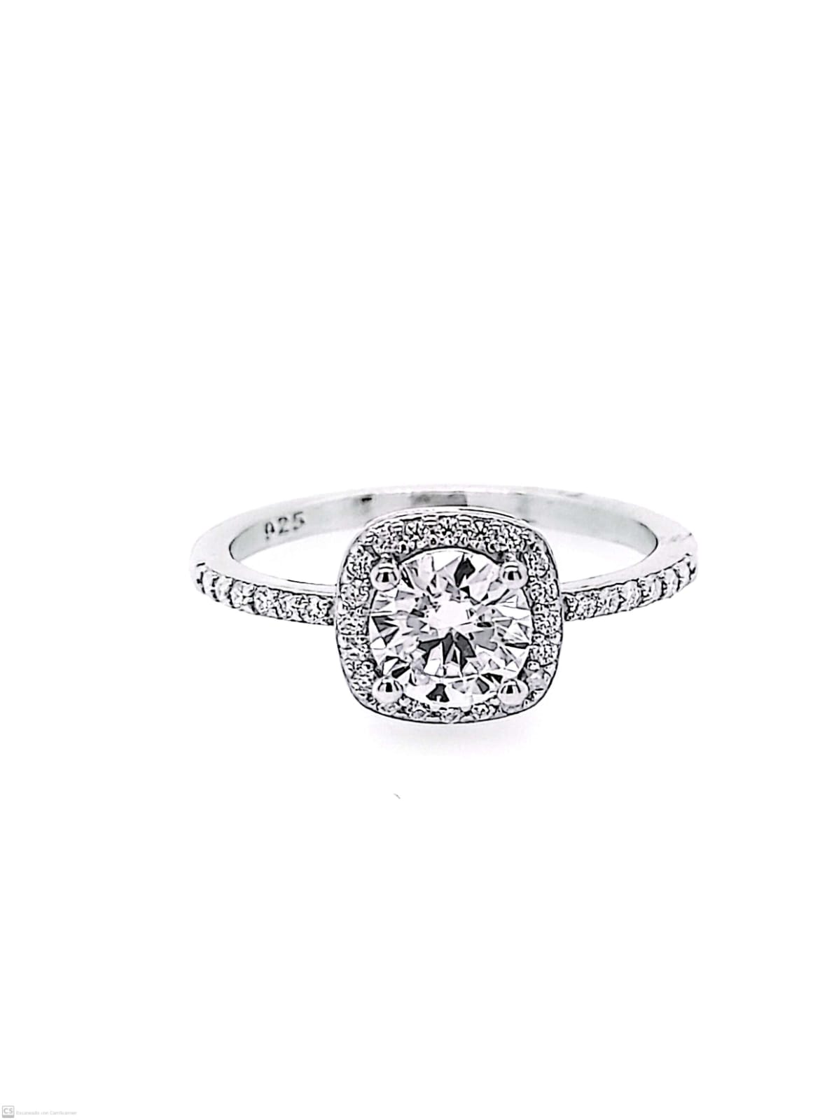 Anillo de plata 925 rodinado, cuadrado con piedra Moissanite.