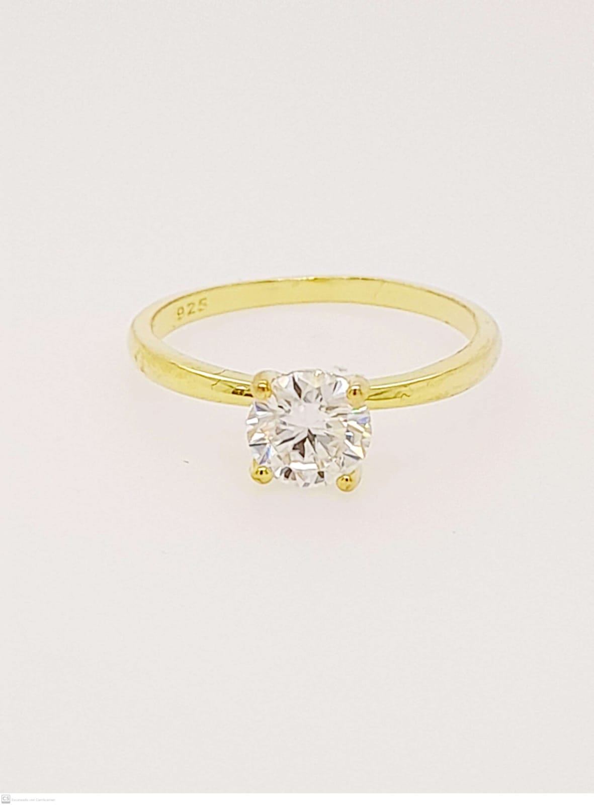Anillo solitario de plata 925 bañado en oro Moissanite redondo.
